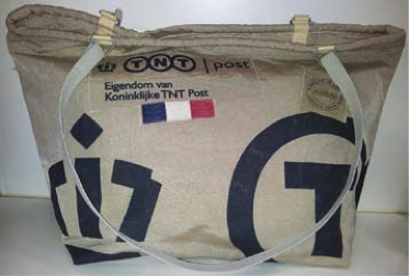 4. Een tas bij elke outfit. Ik vind het wel wat. Voor de zomer staat deze tas, gemaakt van de oude kunststof PTT postzakken, op mijn verlanglijstje. Het is een extra grote shopper die natuurlijk al strandtas ook prima dienst doet. De tas heeft lange schouderbanden aan de originele posthaken en is niet gevoerd.
